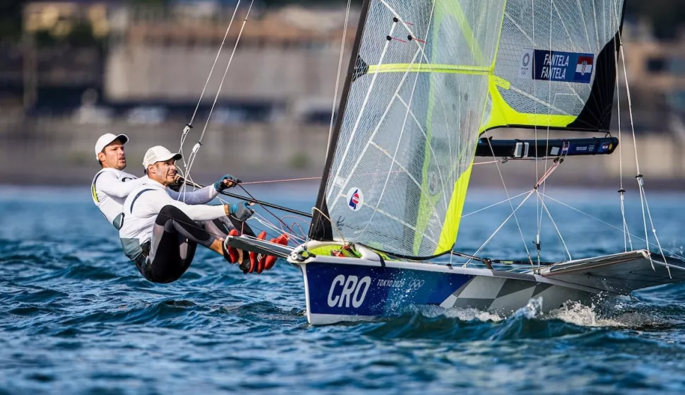 Hrvatski jedriličari, braća Šime i Mihovil Fantela, loše su započeli svoj nastup u klasi 49-er na Olimpijskim igrama. Na regatnom polju u blizini Marseillea u nedjelju u prva tri plova redom su ostvarivli 12., 15. i 17. ulazak u cilj u konkurenciji 20 posada. Kako se svakoj posadi odbija po jedan najlošiji rezultat, braća Fantela su sa 27 negativnih bodova trenutačno na 16. poziciji. Vode Švicarci Sebastian Schneiter i Arno de Planta s tri negativna boda, drugi su Novozelanđani Isaac McHardie i William McKenzie s četiri negativna boda, a treći su Urugvajci Hernan Umpierre i Fernando Diz s pet negativnih bodova. Čitava flota odjedrit će 12 plovova nakon kojih će 10 najboljih posada izboriti nastup u plovu za odličja. Sljedeća tri plova na programu su danas (ponedjeljak).