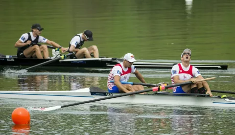 - Bila je to dobra utrka, popravili smo se u odnosu prema kvalifikacijama, gdje su nas Rumunji pobijedili s većom razlikom. Malo mi je žao što nismo uzeli prvo mjesto, ali nema veze, napredujemo iz dana u dan i to je najvažnije. Treba još puno raditi kako bismo sustigli Rumunje, a onda i sve ostale - kazao je nakon utrke Valent Sinković, koji je s bratom Martinom osvojio sve što se osvojiti može. Sinkovići imaju medalje s najvećih veslačkih natjecanja, i to u četvercu na parće (s Davidom Šainom i Damirom Martinom), dvojcu bez kormilara, dvojcu na pariće. Sad su krenuli u četvercu bez kormilara uz braću Lončarić. Iako su odavno pokorili svijet, motiva još itekako ima.